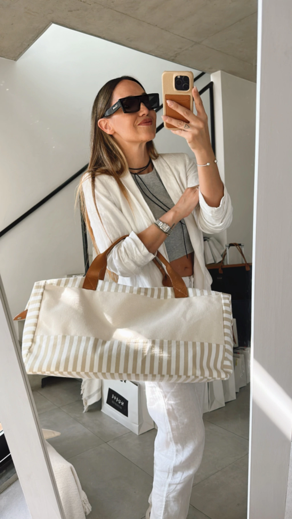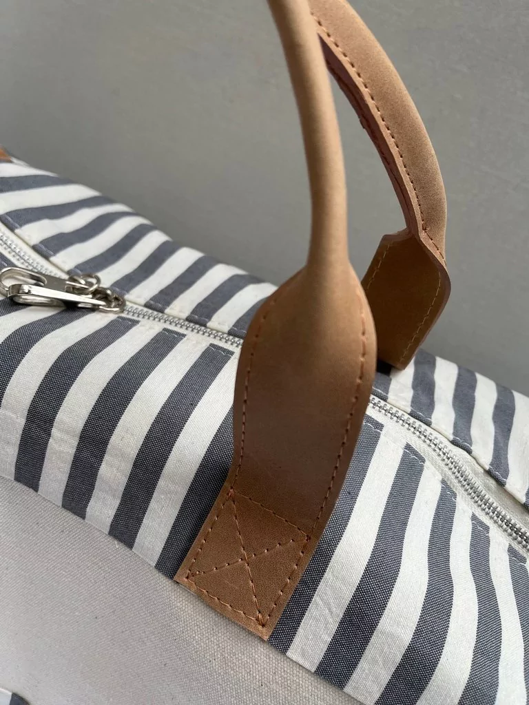 Tiene detalles de cuero y es muy amplio para el día a día y para salir de paseo.