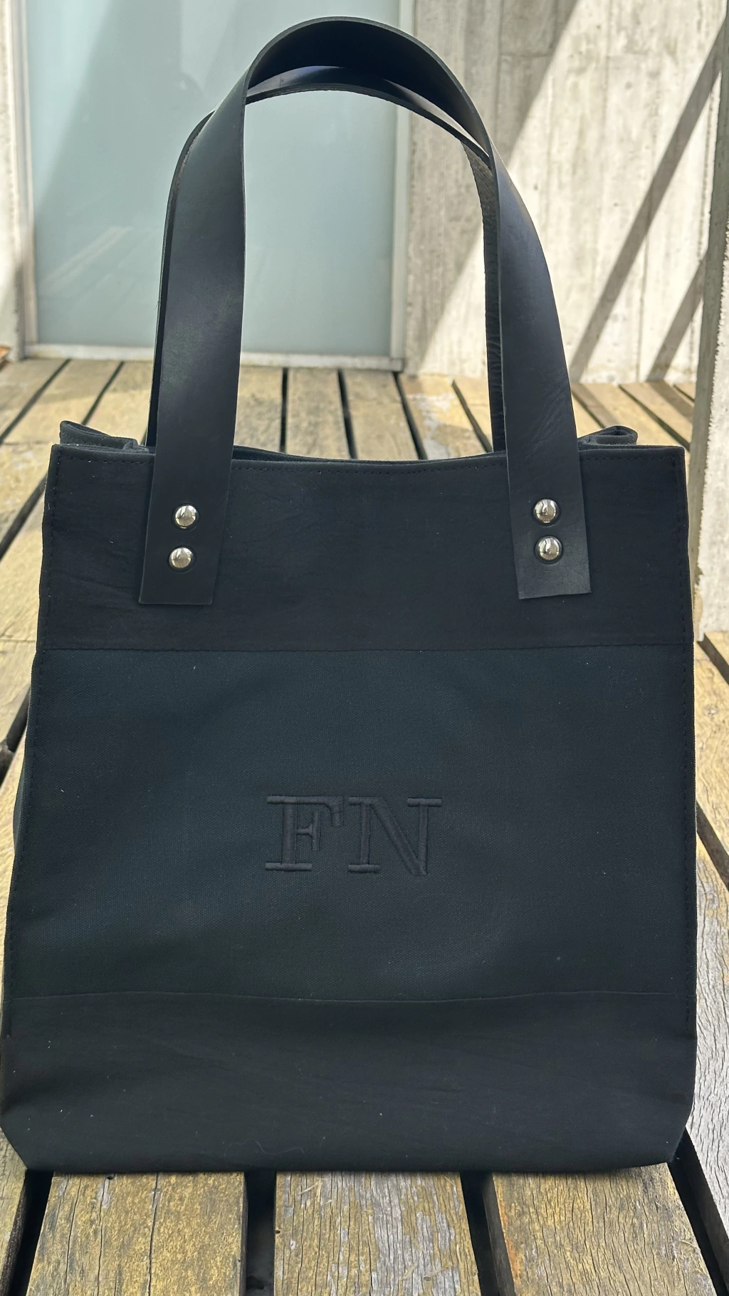Es de rustico 100% algodon, letras bordadas, forrada, con bolsillo interno, broche magnetico para cerrar, y manijas de cuero (63cm)