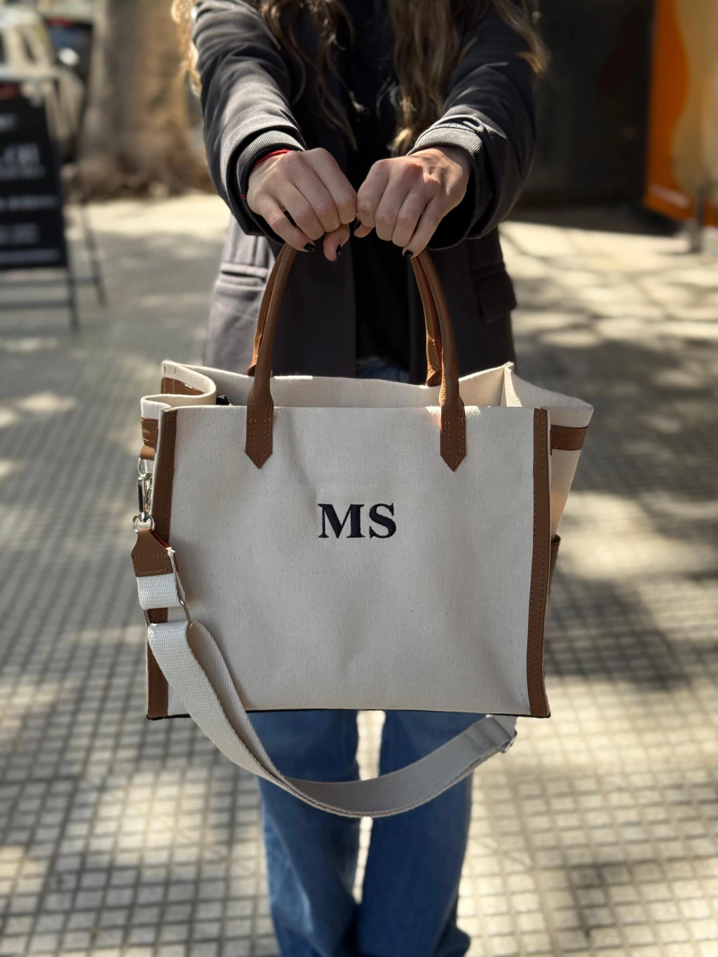 Llegó la Cartera SOL 100% de rústico algodón! Tiene cierre y viene con manija corta con detalles en cuero. Las letras bordads. En observaciones podes aclarar las letras.